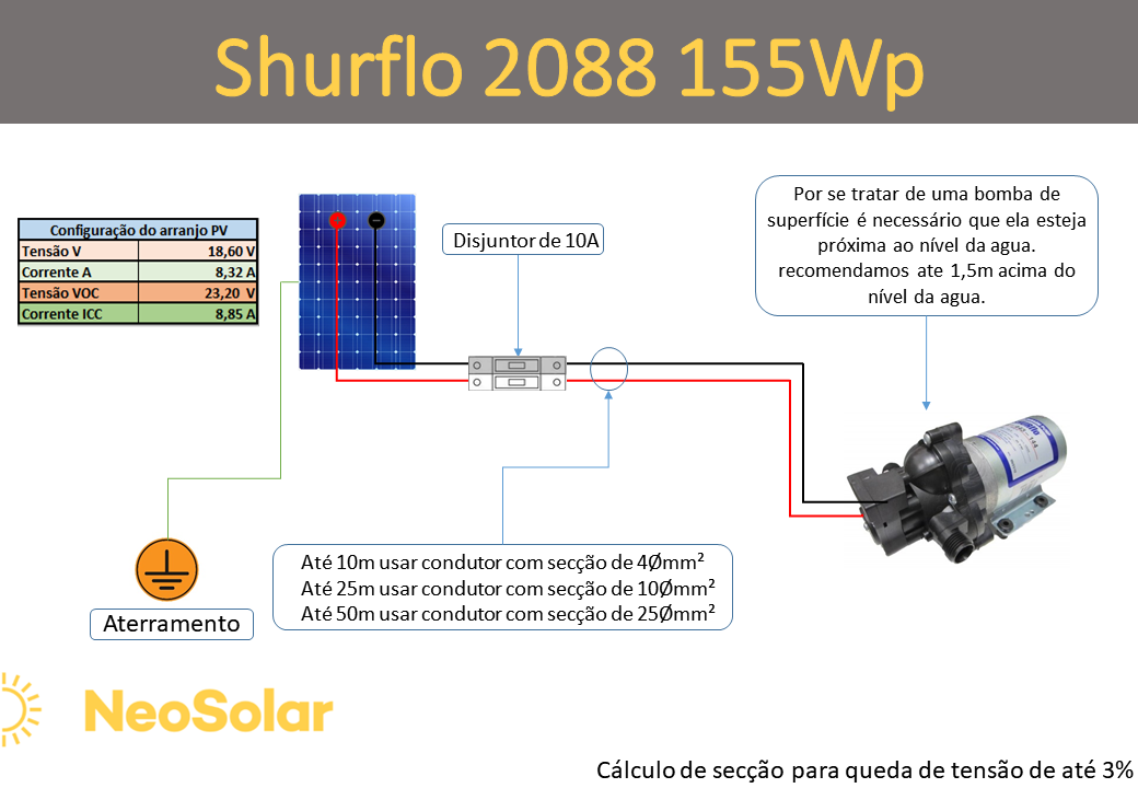 | | Dimensionamento:Certifique-se junto ao nosso suporte caso necessário ou caso haja alguma dúvida se seu kit está devidamente dimensionado. Caso necessite realizar o dimensionamento entre em contato com nosso departamento comercial |